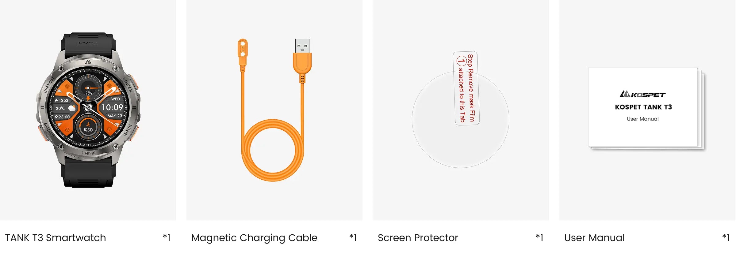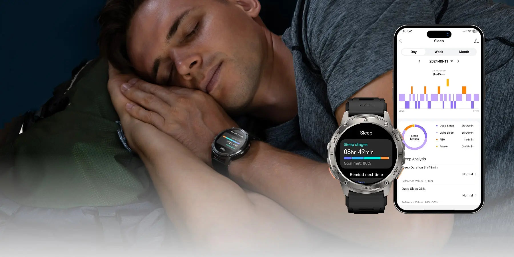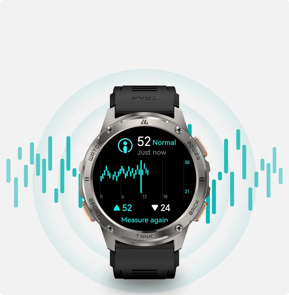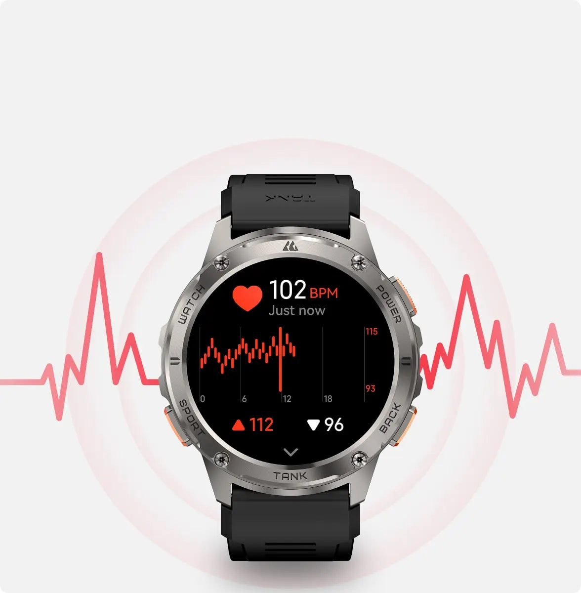 Track your heart rate, blood oxygen, sleep, and stress in real-time with the KOSPET TANK T3, powered by the efficient ATS3085L processor.